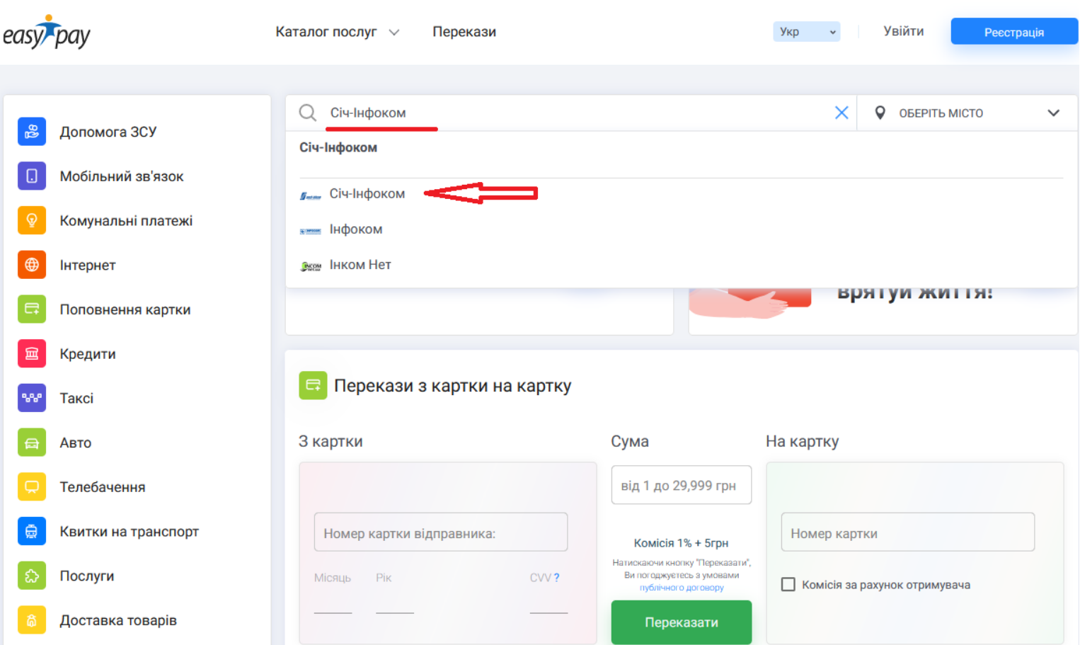 1. У рядок пошуку введіть Січ-Інфоком та оберіть із списку «Січ-Інфоком».