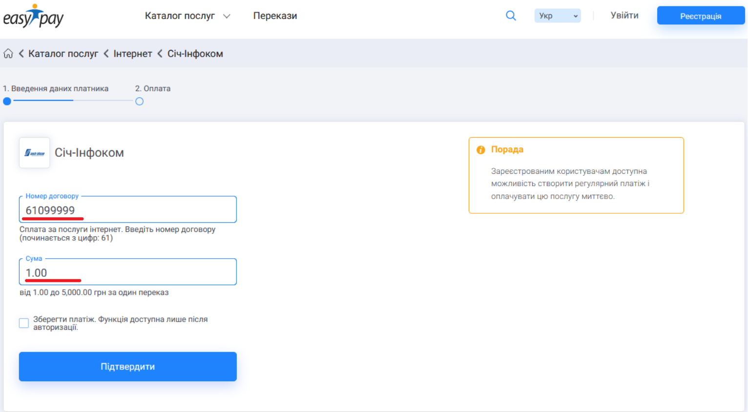 3. Перевірте Ваші дані та натисніть «Оплатити».